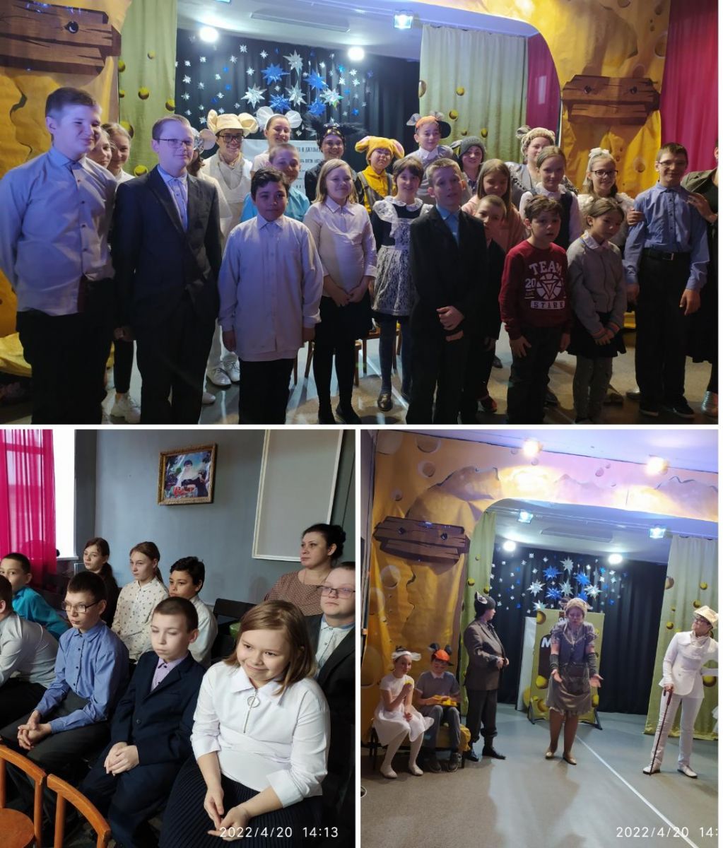 В рамках Весенней недели добра 20 апреля учащиеся 4,5,6а класса с учителями родного языка Гайнановой А. Л., Фасхутдиновой Г. А. ходили в детский дом творчества на просмотр мюзикла "Советская сказка добра".