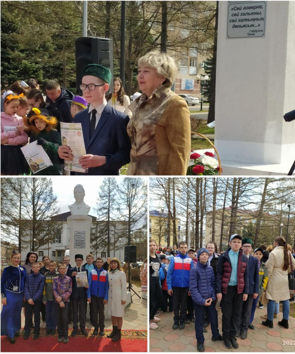 Сегодня, 26 апреля в день рождения величайшего татарского поэта Габдуллы Тукая состоялся митинг возле памятника поэту. На митинге присутствовали представители детских садов, учащиеся школ, учебных заведений, представители творческого объединения «Чишма», почетные ветераны, жители и гости нашего города, средства массовой информации. С нашей школы присутствовали учащиеся 5,6а,7а классов вместе с учителями родного языка Гайнановой А. Л. и Фасхутдиновой Г. А.