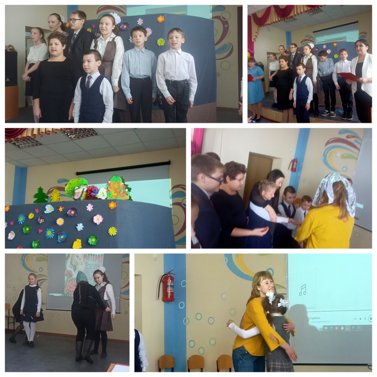 Учителя начальных классов подготовили концерт ко дню матери. Ребята показали сценки, пели песни, рассказывали стихотворения со словами поздравлений. Мамы участвовали в сценках. Все гости получили много положительных эмоций.