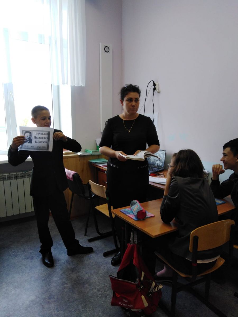 В школе прошел классный час "Вячеслав Яковлевич Шишков - человек добра и веры".