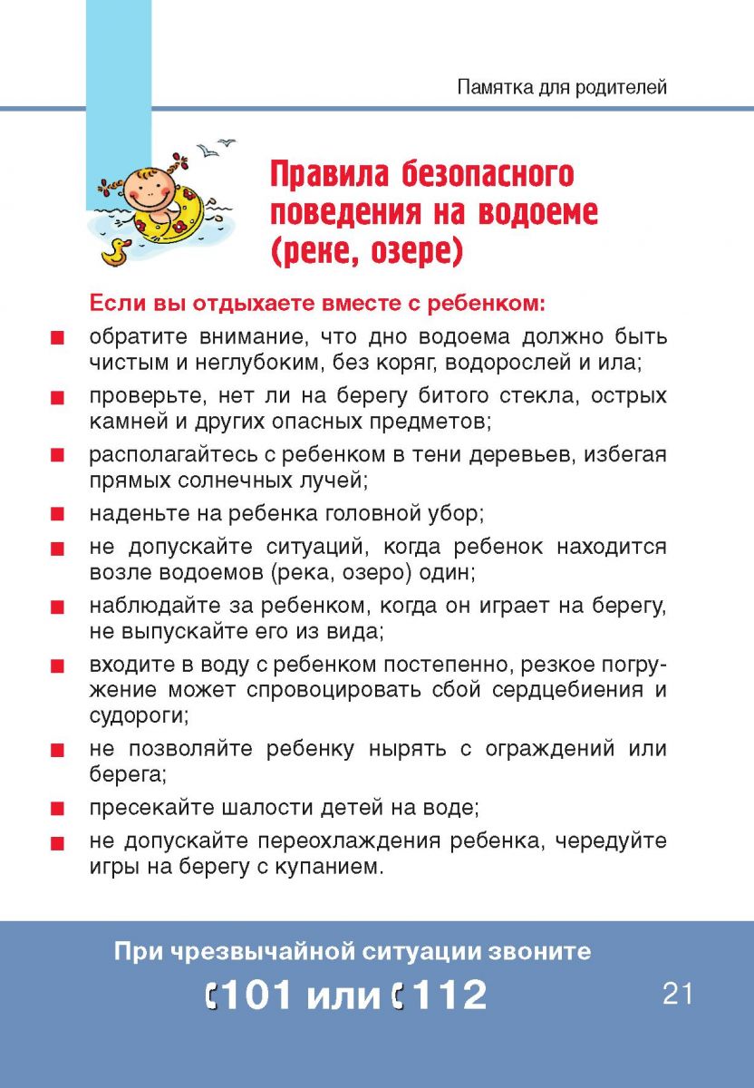 Памятка для родителей "Правила безопасного поведения на водоеме"