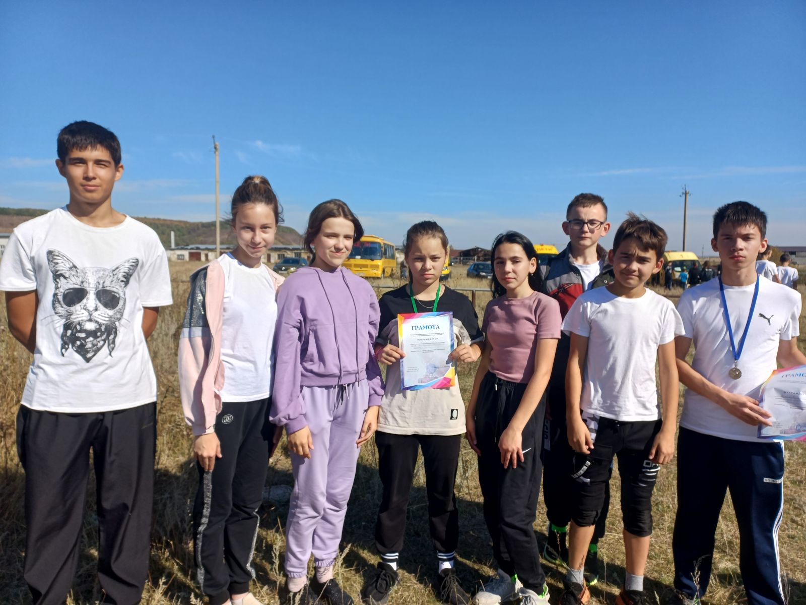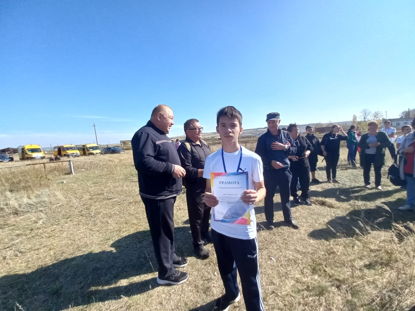24 сентября в Лениногорском районе прошли соревнования по бегу "Осенний кросс". Команда нашей школы заняли 3 место. Галиуллина Азалия заняла 3 место среди 6-7 классов, Сабирзянов Камиль среди 8-9 классов занял 2 место. Поздравляем всех победителей и участников соревнований! 24 нчы сентябрь көнне Лениногорск районы укучылары арасында "Көзге кросс" йөгеру ярышы булды. Куакбаш мәктәбе командасы да ярышта актив катнашып 3 нче урын алды. 6-7 класслар арасында Галиуллина Азалия 3нче урын, 8-9 класслар арасында Сабирзянов Камил 2 нче урын яуладылар. Җинүчеләрне hәм барлык катнашкан укучыларыбызны котлыйбыз! Фото Фото1 Фото2 Фото3