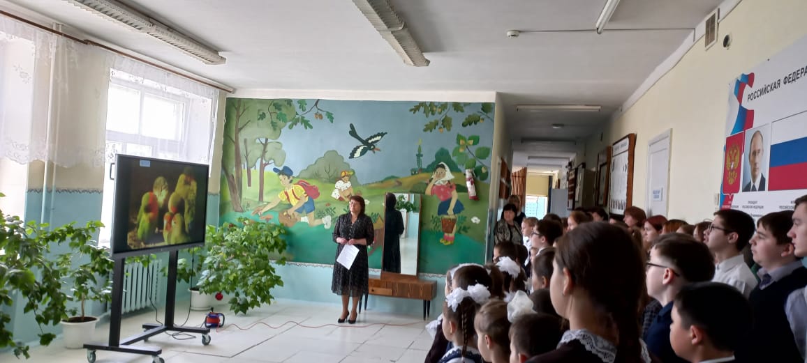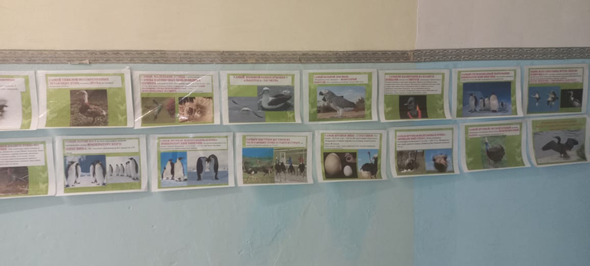 Мәктәбебездә биология атналыгы бара. Шул унайдан биология укытучысы Сабирҗанова Лилия Петровна "Гаҗәеп кошлар" темасына класстан тыш чара уздырды. Укучылар планетабызнын төрле почмакларында тереклек итүче үзенчәлекле кошлар белән таныштылар. Шулай ук "Рекордсмен кошлар" темасына ясалган тематик күргәзмә тәкъдим ителде. Укучыларыбыз үзләре дә кошларга багышланган рәсемнәр ясап күргәзмәдә катнаштылар.