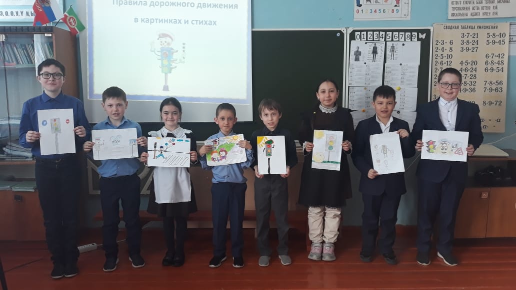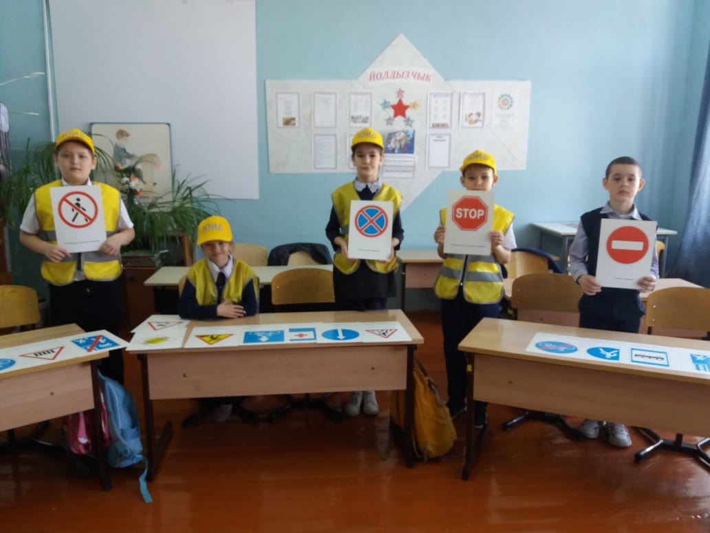 Язгы каникуллар алдыннан ЮИД отряды членнары юлда йөрү кагыйдәләрен өйрәнделәр. Отряд җитәкчесе Хасанова Ф.Г. белән берлектә укучылар юл билгеләрен кабатлады, рәсемнәр ясадылар, табышмаклар һәм кроссвордлар чиштеләр.
