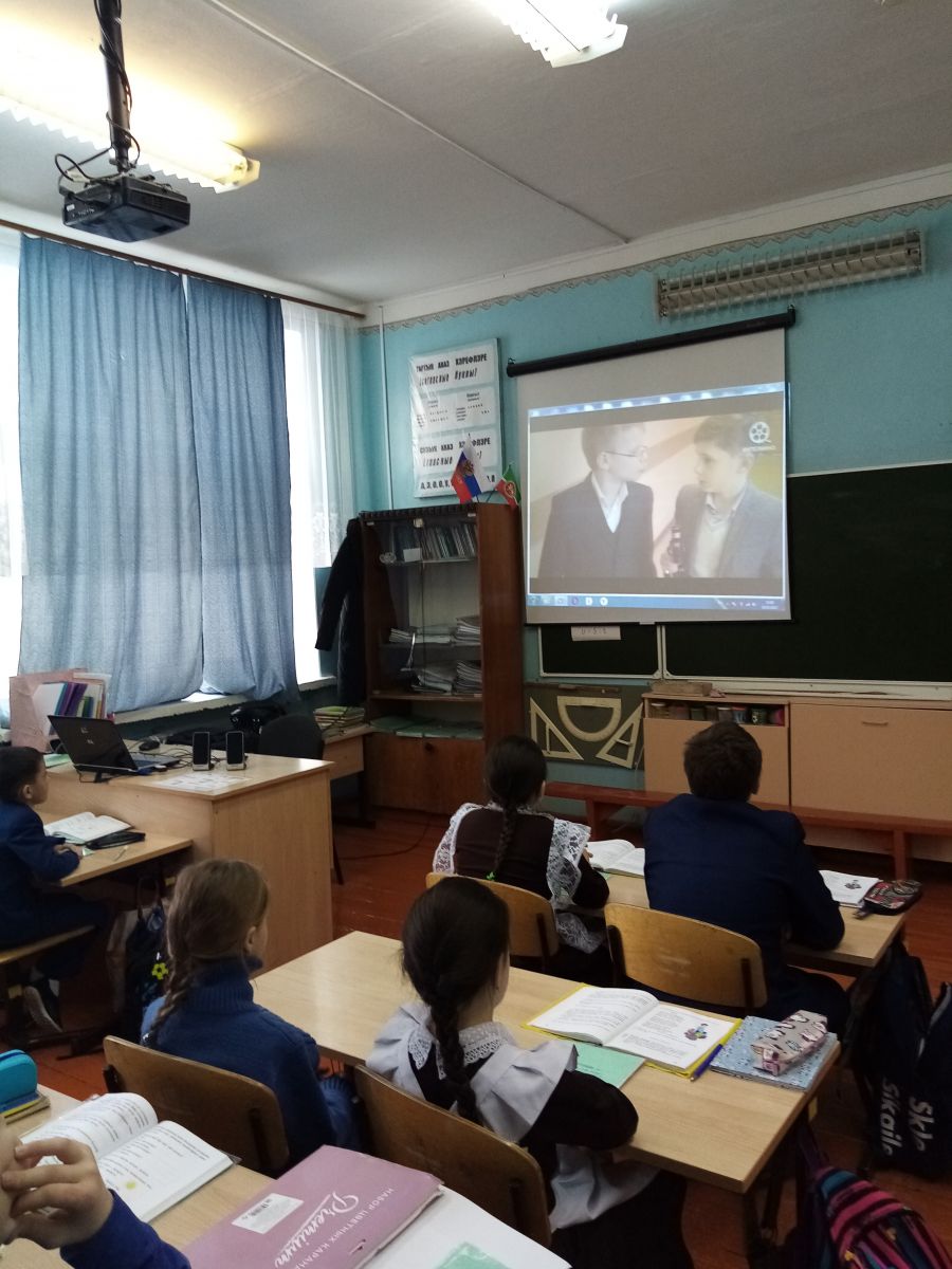 Учащиеся школы принимают участие в реализации Всероссийского проекта «Киноуроки в школах России». В рамках данного проекта 18 и 19 февраля в школе организовали просмотр видеофильмов. Учащиеся 2-4 классов смотрели фильм «Не трус не предатель», 5, 6, 8, 9 классы «Лошадки героя». Ученики 7 класс смотрели фильм «Экзамен». Ученики 1 класса вместе с родителями смотрели фильм «Друг в беде не бросит».