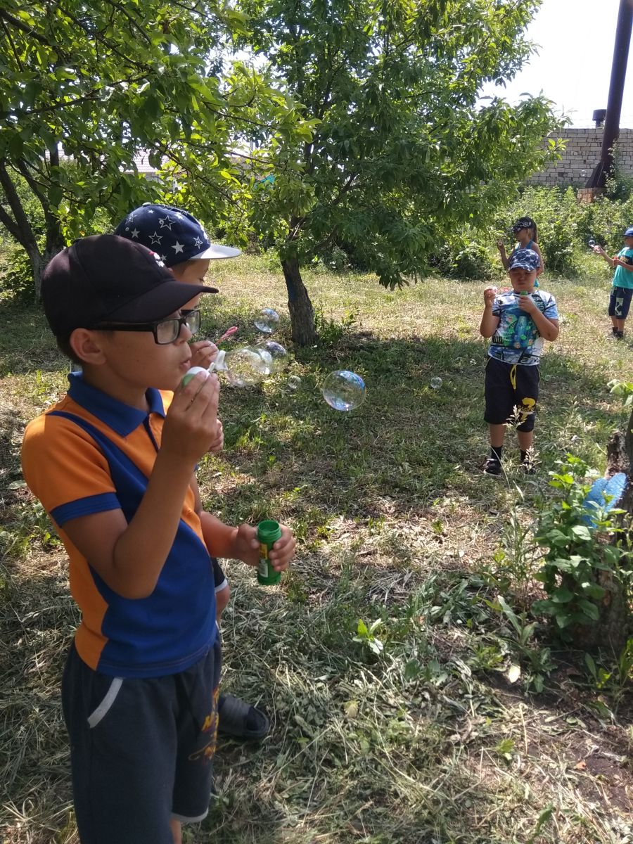 23 июня в пришкольном лагере "Кояшкай" день прошёл легко и весело, как мыльный пузырь. Ведь ребята очутились в "Царстве мыльных пузырей". Воспитатели подготовили невероятно интересную программу, где дети разгадывали загадки, пели песни и танцевали. И всё это на тему "Мыльных пузырей". Кульминацией программы стало мыльное шоу. Но и здесь воспитанники лагеря соревновались, показывая свои способности: Кто же надует самый большой мыльный пузырь? Кто поймает руками и не лопнет мыльный шарик?