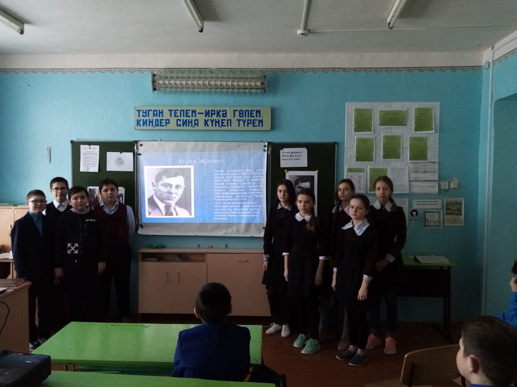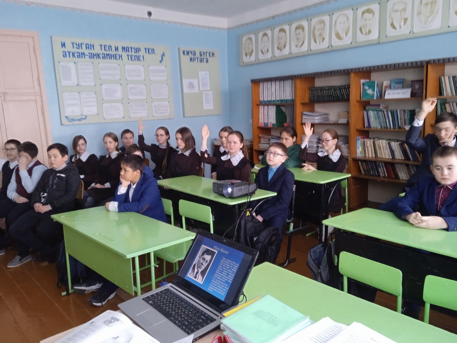 Да, он не забыт, М.Джалиль - в наших сердцах. Сегодня, в день 115 –летия М.Джалиля, учащиеся 5-8 классов Куакбашской ООШ участвовали в вечере, посвящённом памяти великого татарского поэта. Сначала они ответили на вопросы викторины. Познакомились с мультимедийной презентацией о жизни и творчестве Мусы Джалиля. Цель проведения мероприятия – показать величие подвига татарского поэта, воспитать у учащихся чувство патриотизма.