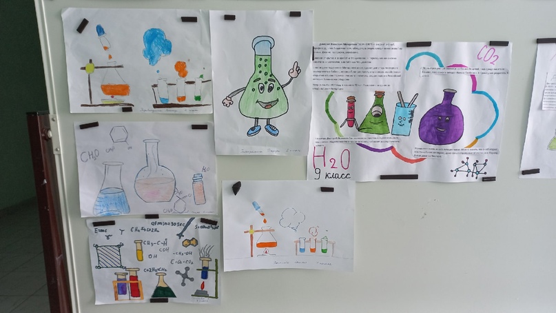 В рамках недели химии в школе организовали выставку рисунков учащихся "Химия вокруг нас и для нас"