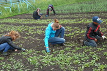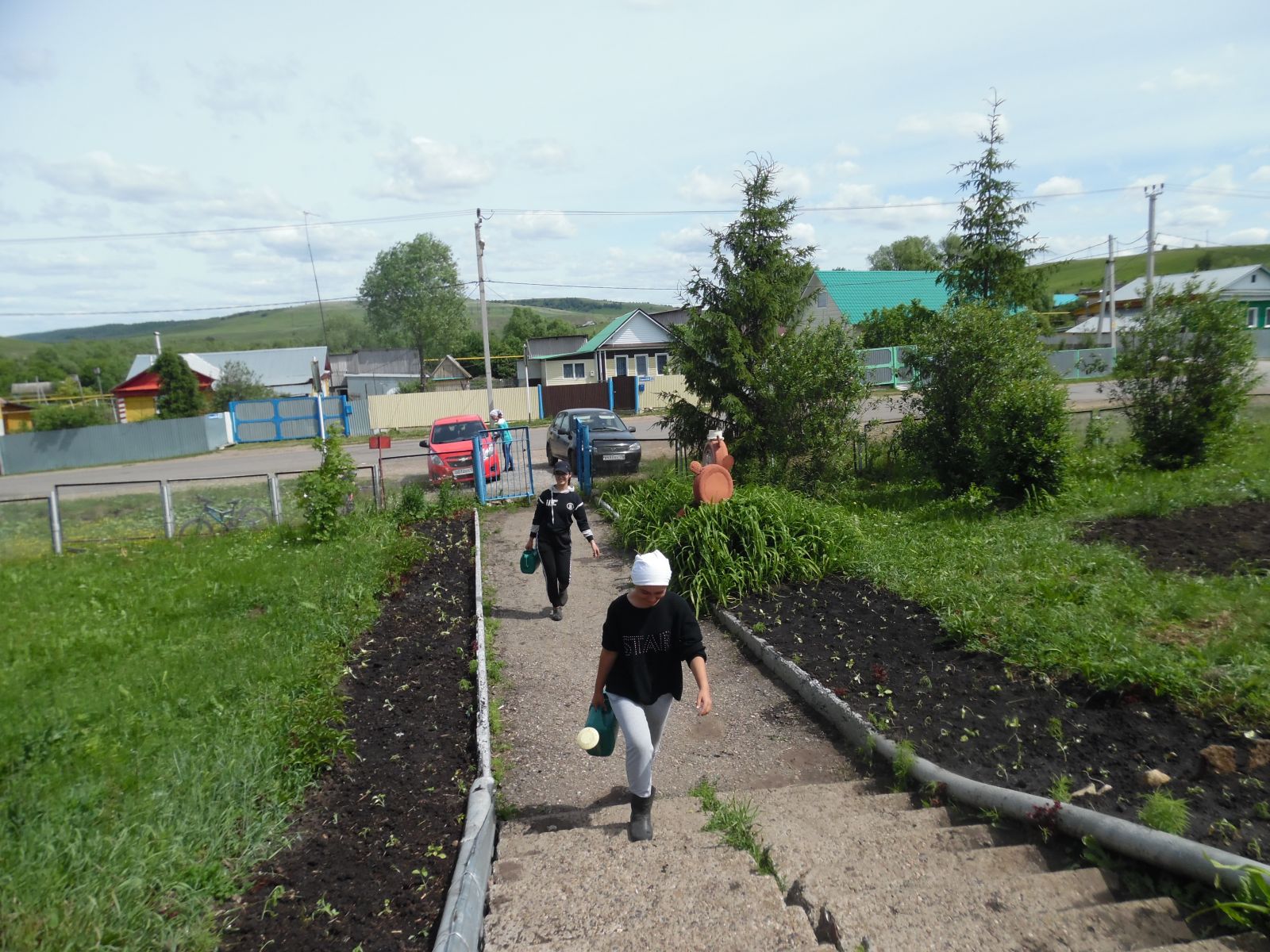 Хезмәт лагерына йөрүче балалар мәктәп бакчасындагы кишер, суган, чөгендер түтәлләрендә чүп утыйлар, үсентеләрне сирәклиләр, су сибәләр.
