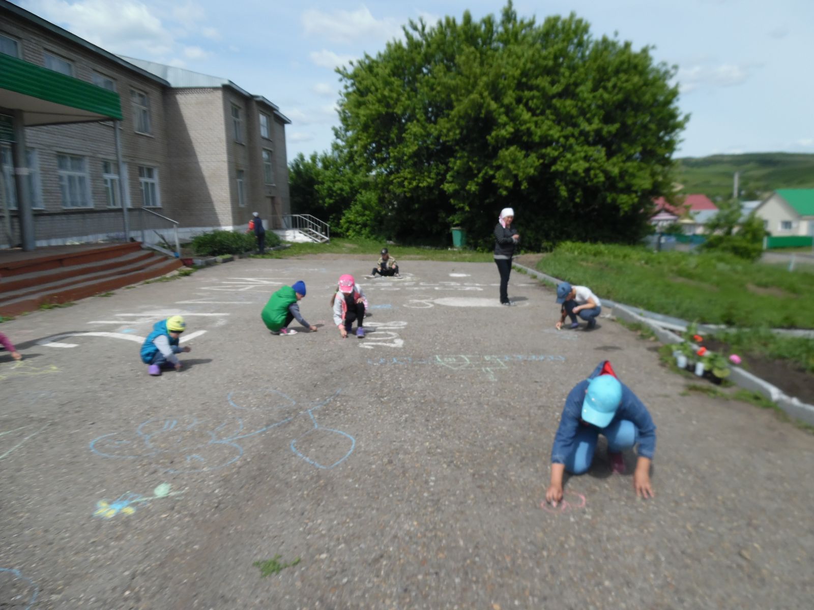 Сегодня в пришкольном лагере "Солнышко" прошел конкурс рисунков на асфальте "Мы любим жизнь!"