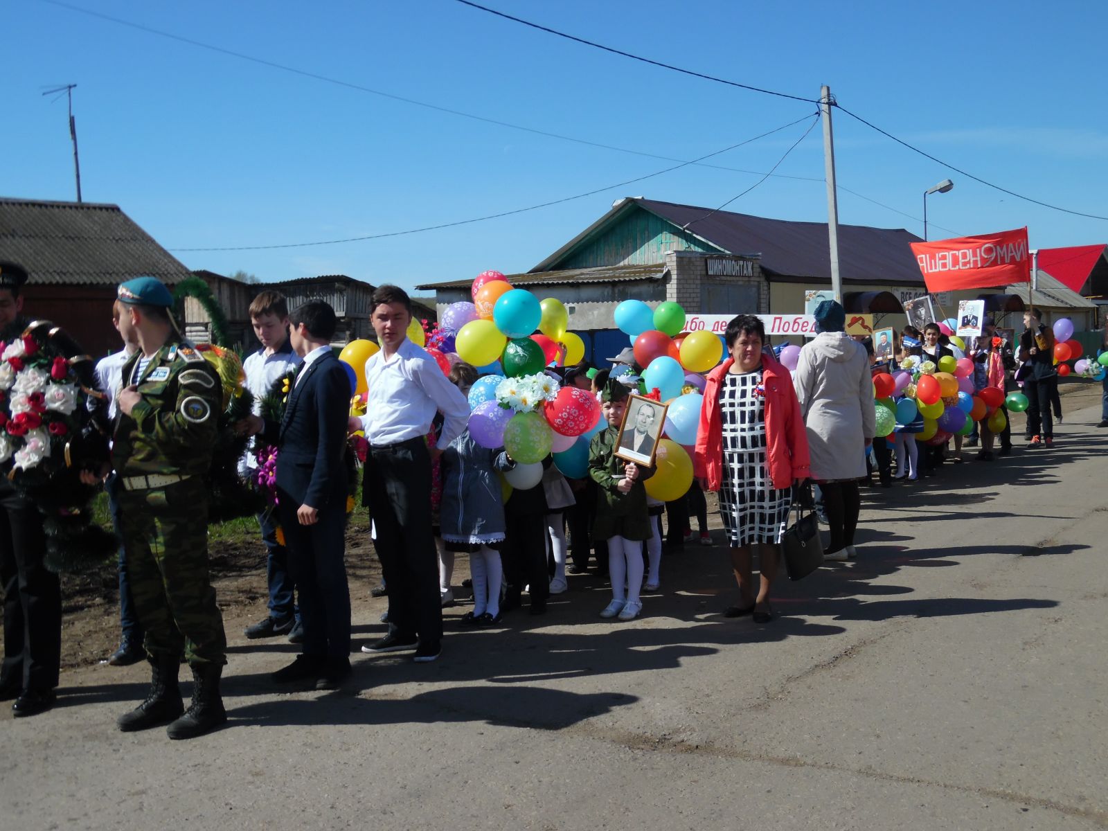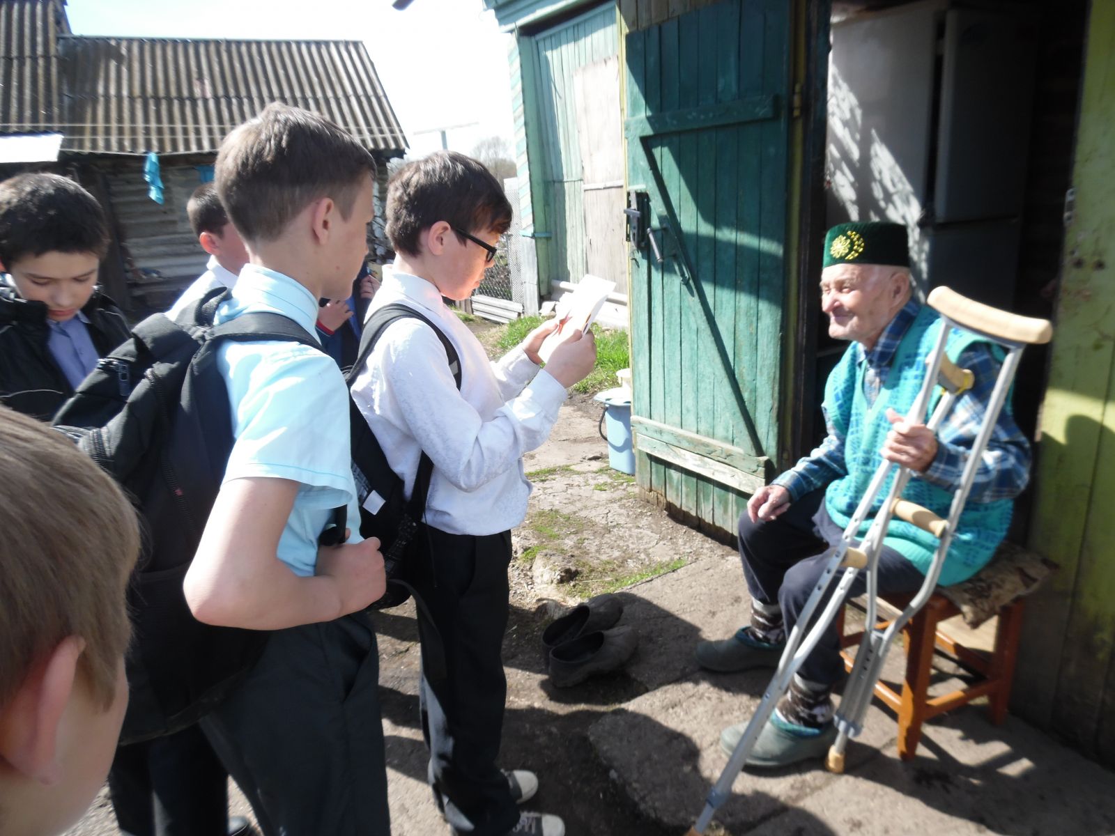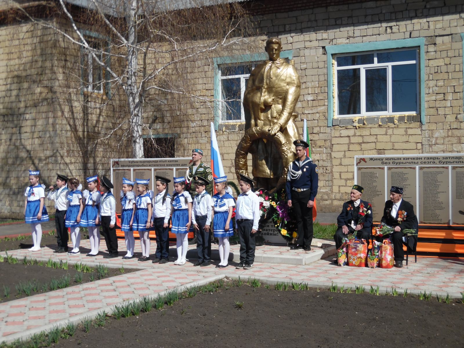 Бөек Җиңү бәйрәме уңаеннан, 5 нче класс укучылары балачагын, яшьлеген сугыш урлаган авылдашларыбыз өчен котлау открыткалары әзерләделәр. Кадерле тыл һәм сугыш ветераннары! Сезнең гүзәл сыйфатларыгыз: сабырлык, кыюлык, батырлык, ныклык, Ватанга булган тугрылыгыгыз алдында баш иябез! Сугыштан соң да сез, төнне көнгә, көнне төнгә ялгап, ил язмышына кушылып, хезмәткә җигелдегез. Сез әле дә олы йөрәкле, саф күңелле әүлия затлар, сугыш чоры кешеләре! Алдагы тормышыгызда нык сәламәтлек, иминлек һәм күңел күтәренкелеге юлдаш булсын үзегезгә. Якыннарыгызның җан җылысын тоеп, озын һәм бәхетле гомер итегез!