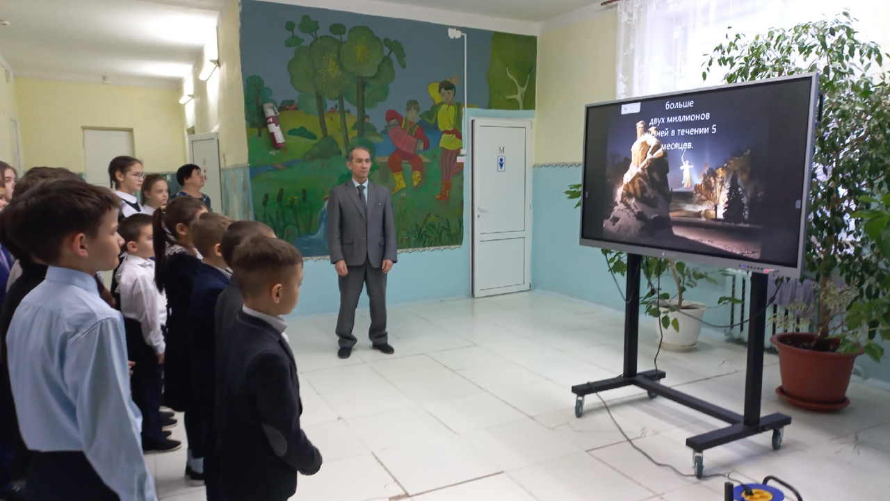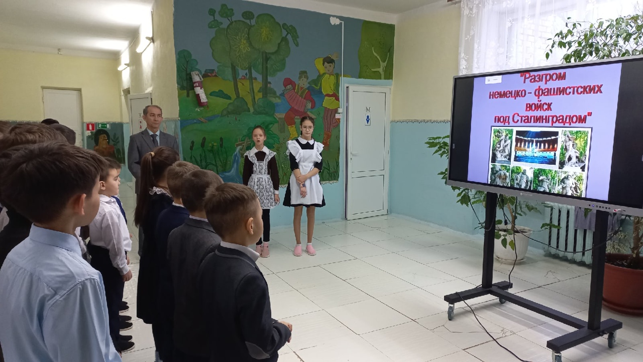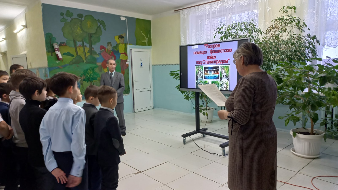 Сегодня учитель истории Мансурова З. Р. и советник директора по воспитанию Сабирзянов А.А. провели кинолекторий посвящённый Сталинградской битве.