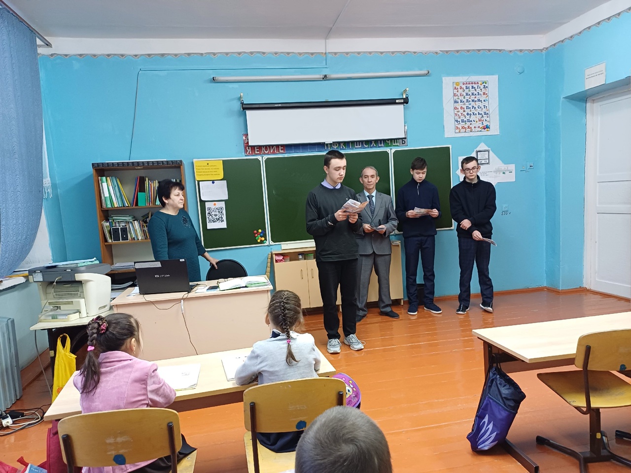 Сегодня в школе прошло воспитательное мероприятие посвященное ко Дню российского студенчества, разработанный активом обучающихся и педагогическим коллективом. Учащиеся школы встретились с студентом нефтяного техникума Галиуллиным Ниязом. Он рассказал нам как проходит учёба в техникуме. Ребята задавали интересующие их вопросы. Посмотрели видеоролик о нефтяном техникуме г. Лениногорска. К сожалению из-за погодных условий не все приглашённые студенты смогли прийти на встречу. В завершении учащиеся сыграли в интеллектуальную игру КВН, получили подарки. Мероприятие организовали и провели советник директора по воспитанию Сабирзянов А.А.