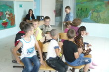 Бүген "Кояшкай" ял лагерына йөрүче балалар "Остакуллар" түгәрәгендә төсле картоннан сумкалар ясадылар.