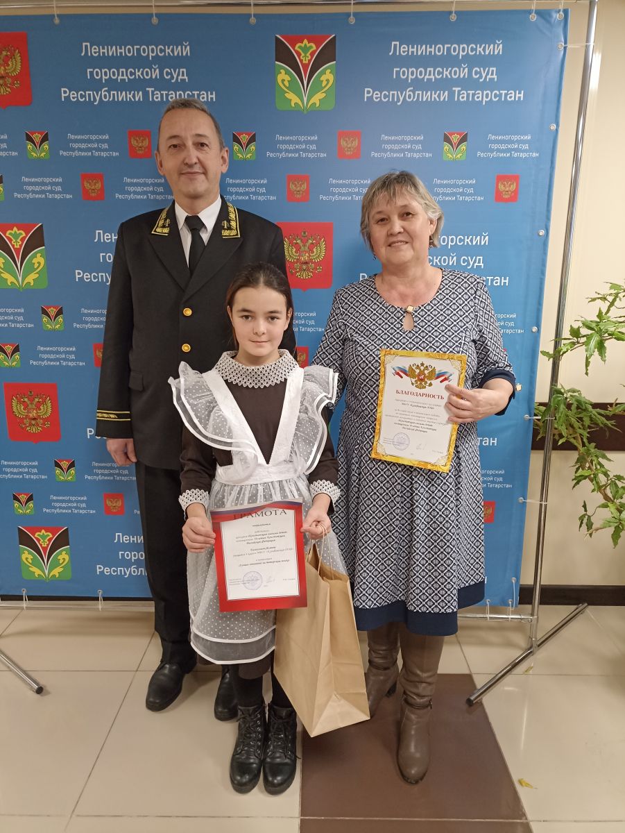 12-го декабря 2023 года Конституции Российской Федерации 30 лет. В связи с этим Советом судей Республики Татарстан был проведен конкурс среди учащихся школ города и района «Конституция глазами детей». Работы были представлены в Лениногорский городской суд. 12-го декабря 2023 года победители конкурса были приглашены для награждения. Среди них есть и ученица нашей школы Галиуллина Ясмина Р. Она стала победителем в номинации «Лучшее сочинение на татарском языке». Поздравляем.