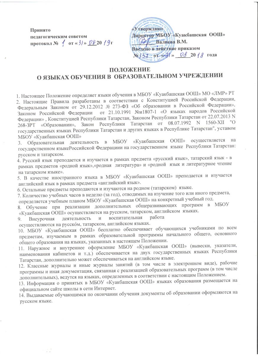 Короткое название: МБОУ "Куакбашская ООШ" МО ЛМР РТ