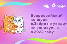 Стартовал приём заявок на Всероссийский конкурс «Добро не уходит на каникулы» 2022! Всероссийский конкурс «Добро не уходит на каникулы»- это конкурс для тех, кто верит в себя, в своих друзей, кто сам определяет свое настоящее и будущее, кто сам спешит делать добро. Сделаем вместе этот мир лучше!