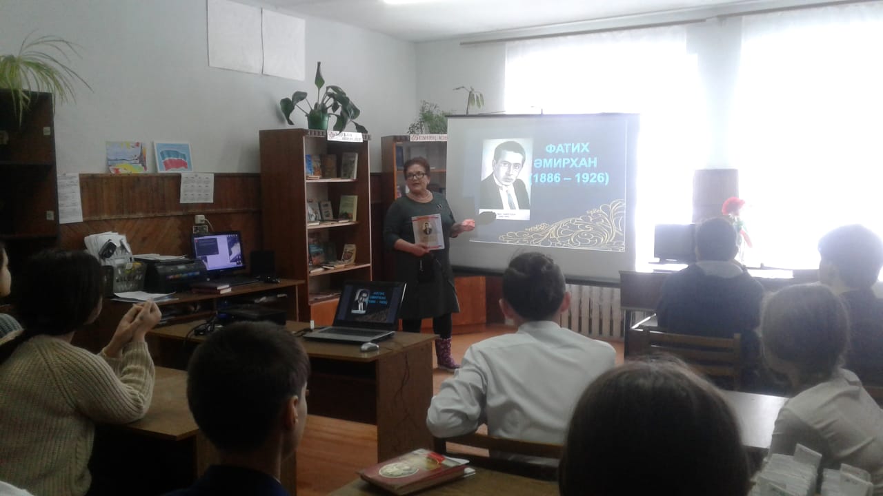 25 нче январь көнне мәктәп китапханәсендә «Туган телләр» айлыгы уңаеннан күренекле татар әдибе Фатих Әмирханның тууына 135 ел тулу уңаеннан язучыга багышланган чара уздырылды. Укучыларның чыгышлары тыңланды, әдипкә багышланган презентация күрсәтелде. -
