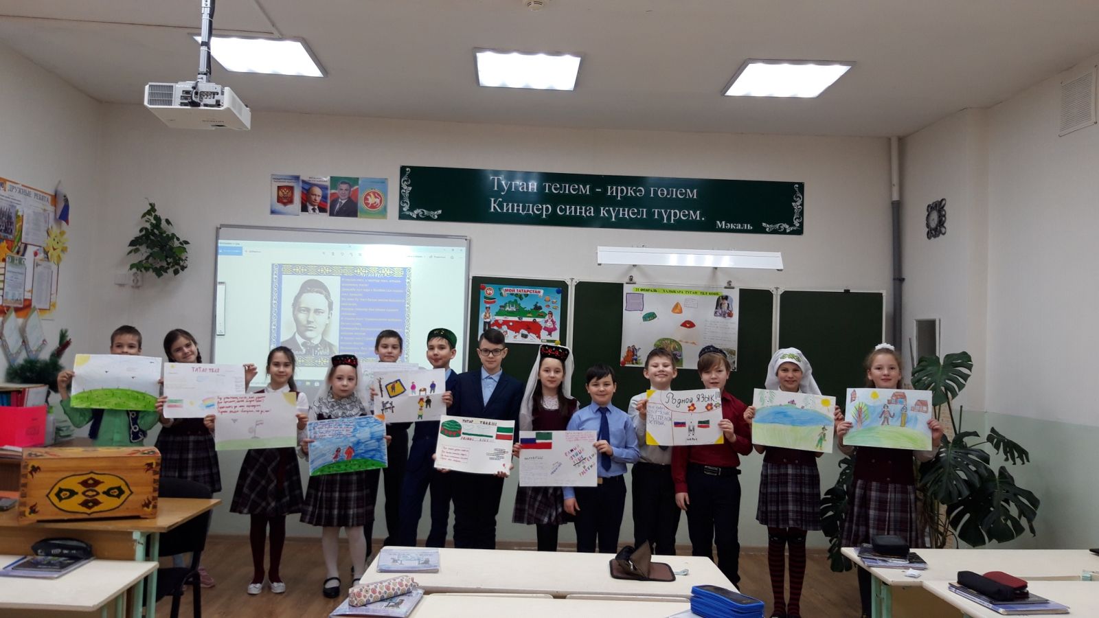 В рамках года родного языка и народного единства, учитель родного (татарского) языка Закирова В.Н. в 4 классе провела внеклассное мероприятие на тему: «Я люблю, тебя родной язык!». Учащиеся рассказывали стихи о красноречии родного языка и нравственности.