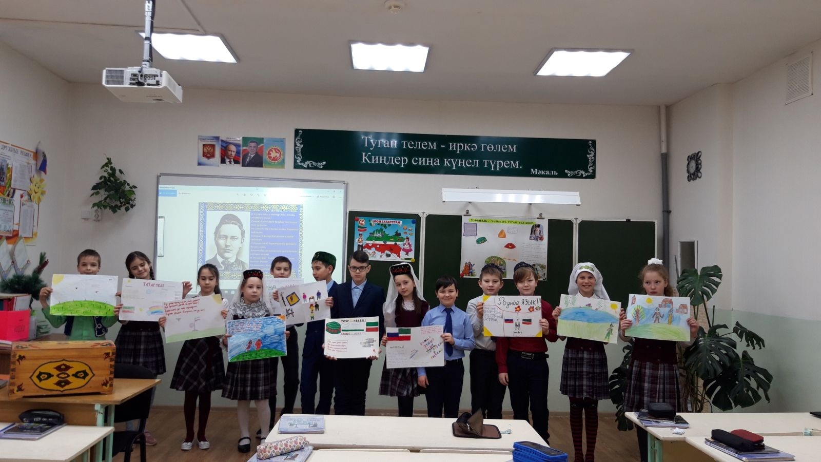 Рус теле турында күпме яхшы сүзләр бар. Константин Георгиевич Паустовский: “Рус теле белән могҗизалар иҗат итәргә була. Тормышыбызда һәм безнең аңыбызда рус телен: музыка яңгыравы, буяулар яме, ут уены, бакча тавышы һәм күләгәсе, яшен тавышы, балалар тавышы һәм диңгез шаулавы белән әйтеп биреп булмый." - дигән . Без сөйләшә торган тел, матур һәм бай. Бүген дә айлык кысаларында 1 нче сыйныф укучылары (укытучысы Вәлиева Р.Г.) викторина формасында үзләренең туган телен белүләренә йомгак ясадылар. Ике команда, малайлар кызларга каршы, сүзләр, ребуслар төзеделәр, табышмакларга җавап бирделәр, шигырьләр иҗат итә белүдә көч сынаштылар. Балалар белемнәрен генә түгел, ә бердәм эшли белүләрен, үз карашларын яклавын да күрсәттеләр. Нәтиҗәдә дуслык җиңде.