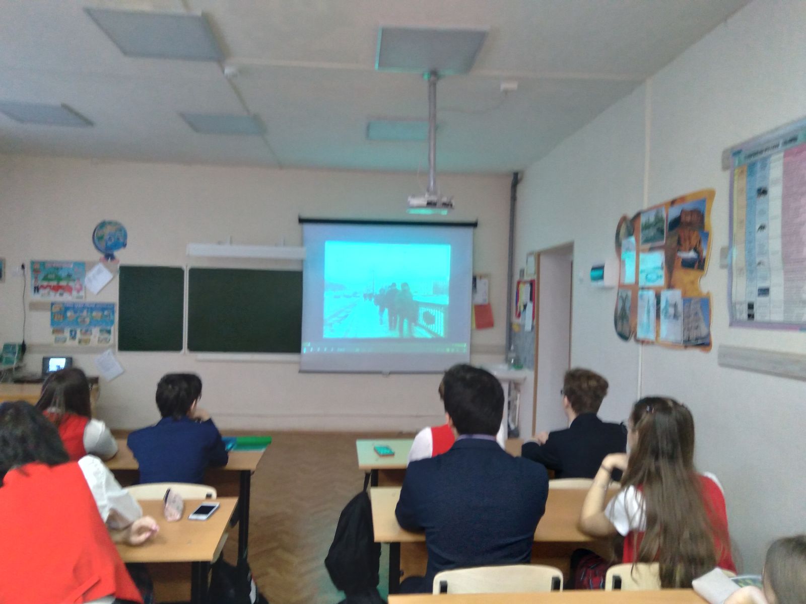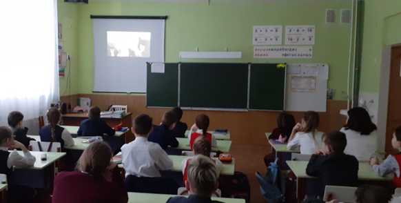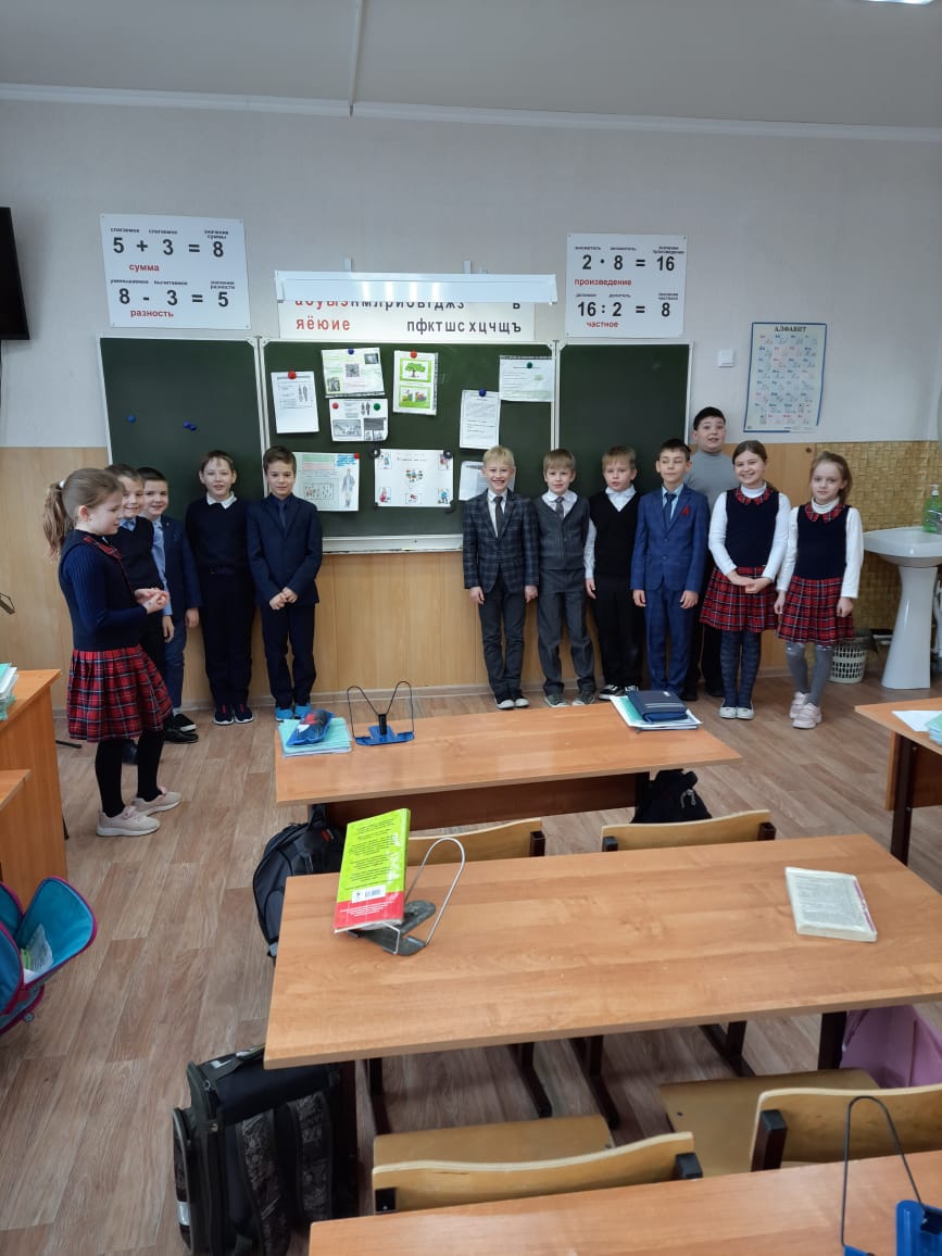 В конце классного часа ученики с классным руководителем почтили память жителей Ленинграда, отстоявших его и не доживших до наших дней, минутой молчания.