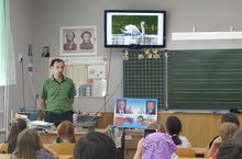 Сегодня в пришкольном лагере "Солнышко" был очень насыщенный радостный день. Начался он с сюрприза - поздравления одного из мальчиков с днём рождения добрым мохнатым мишкой, который с ребятами поиграл, потанцевал и повеселился. После завтрака всех ждало посещение планетария с познавательным и увлекательным фильмом о тайнах нашей вселенной. Кроме этого, сегодня наш лагерь посетил представитель заказника "Степной Зай". Он подробно и интересно рассказал ребятам о птицах, обитающих в заказнике, показал, как они выглядят и познакомил с теми из них, которые занесены в Красную книгу. На этом развлечения не закончились. После обеда ребят ждал актовый зал, где состоялся праздничный концерт, посвященный открытию смены. Мальчишки и девчонки сами подготовили все концертные номера. Здесь были и песни, и танцы, и фокусы, и стихи. Ребята проявили свои многочисленные таланты. В конце дня все были очень довольны.