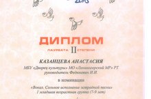 Лауреатом (2 место) в номинации «Вокал. Сольное исполнение эстрадной песни» стала ученица 3 класса Казанцева А.