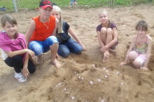 20 июля в лагере отмечался интересный и пока еще молодой праздник – Международный День торта, посвящённый дружбе и миру между людьми, странами, народами. Ребята, проявив фантазию и выдумку, вылепили оригинальные песчаные тортики. Но главным событием дня стал тематический День рождения.