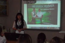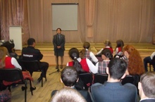 В этот же день учащиеся 11 классов встретились с Герасимовой Е. В. - менеджером по работе с юридическими лицами Татфондбанка. Она рассказала об истории создания банка, о его структуре и функциях, а так же осветила культурную жизнь сотрудников банка и о конкурсах, в которых принимают участие как сам банк в целом, так и его работники и даже клиенты. В заключение, была продемонстрирована презентация, осветившая всю «жизнь» банка.