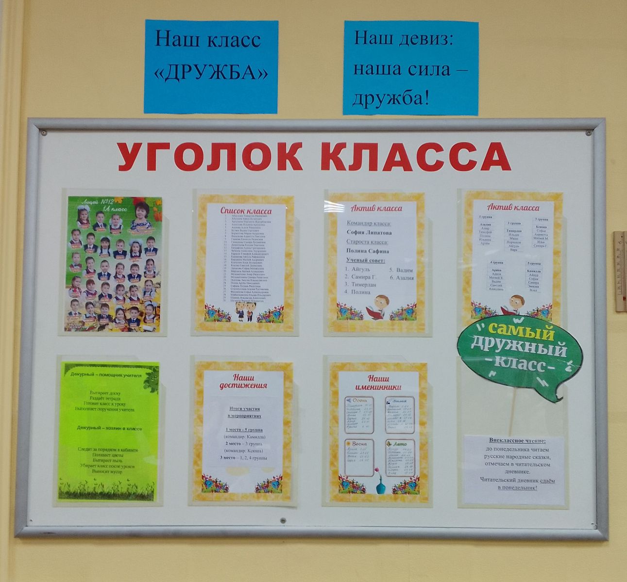 В лицее прошёл Смотр отрядных уголков. По результатам смотра лучшими среди начальных классов признаны уголки 3 «а» (кл.руководитель Валиева Р.Г) и 3 «г» ( кл.руководитель Шаймарданова Р.Ф.), среди 5-8 классов -5 «а» (кл.руководитель Хайретдинова Л.И.) и 5 «б» (кл.руководитель Закирова В.Н.).