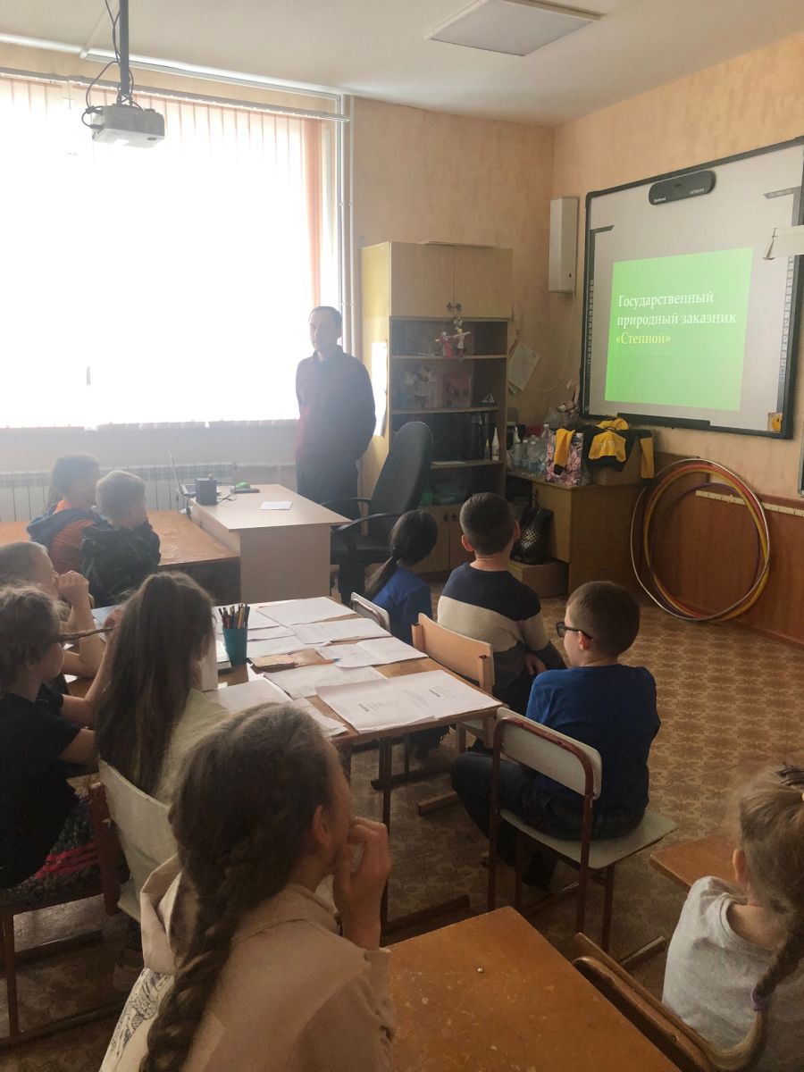 Представитель из заказника «Степной» провёл беседу об охране животных и растений с ребятами из пришкольного лагеря