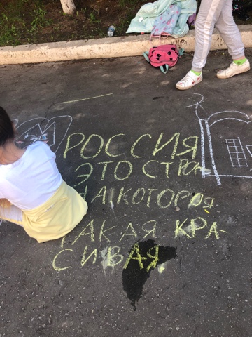 Ко "Дню России" в пришкольном лагере был проведён конкурс стихов о России и рисунков на асфальте.