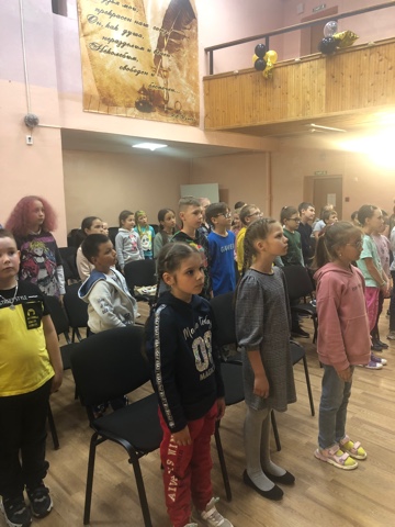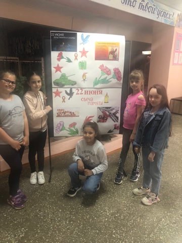 В день памяти и скорби дети пришкольного лагеря почтили минутой молчания всех погибших в Великой Отечественной войне .