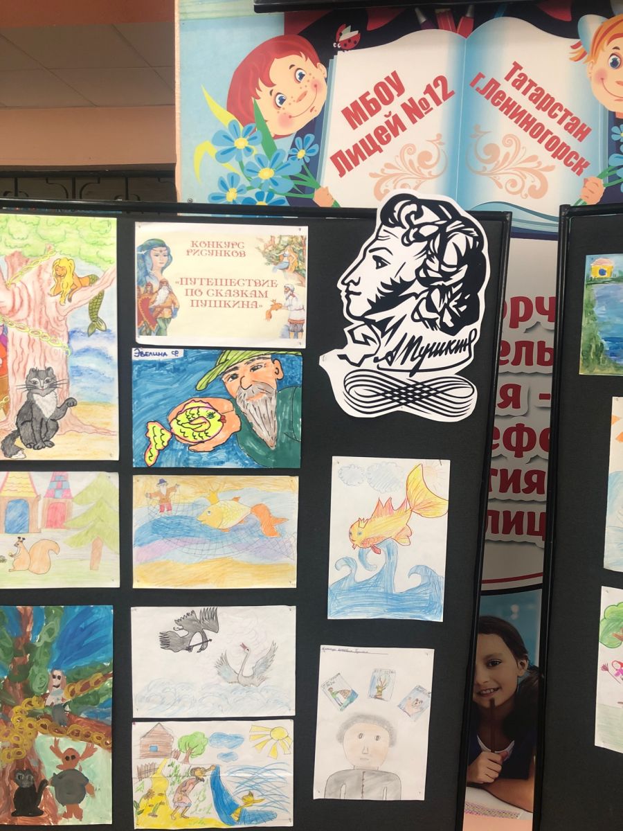 В день русского языка в пришкольном лагере «Солнышко» была организована выставка и викторина по сказкам А.С.Пушкина.