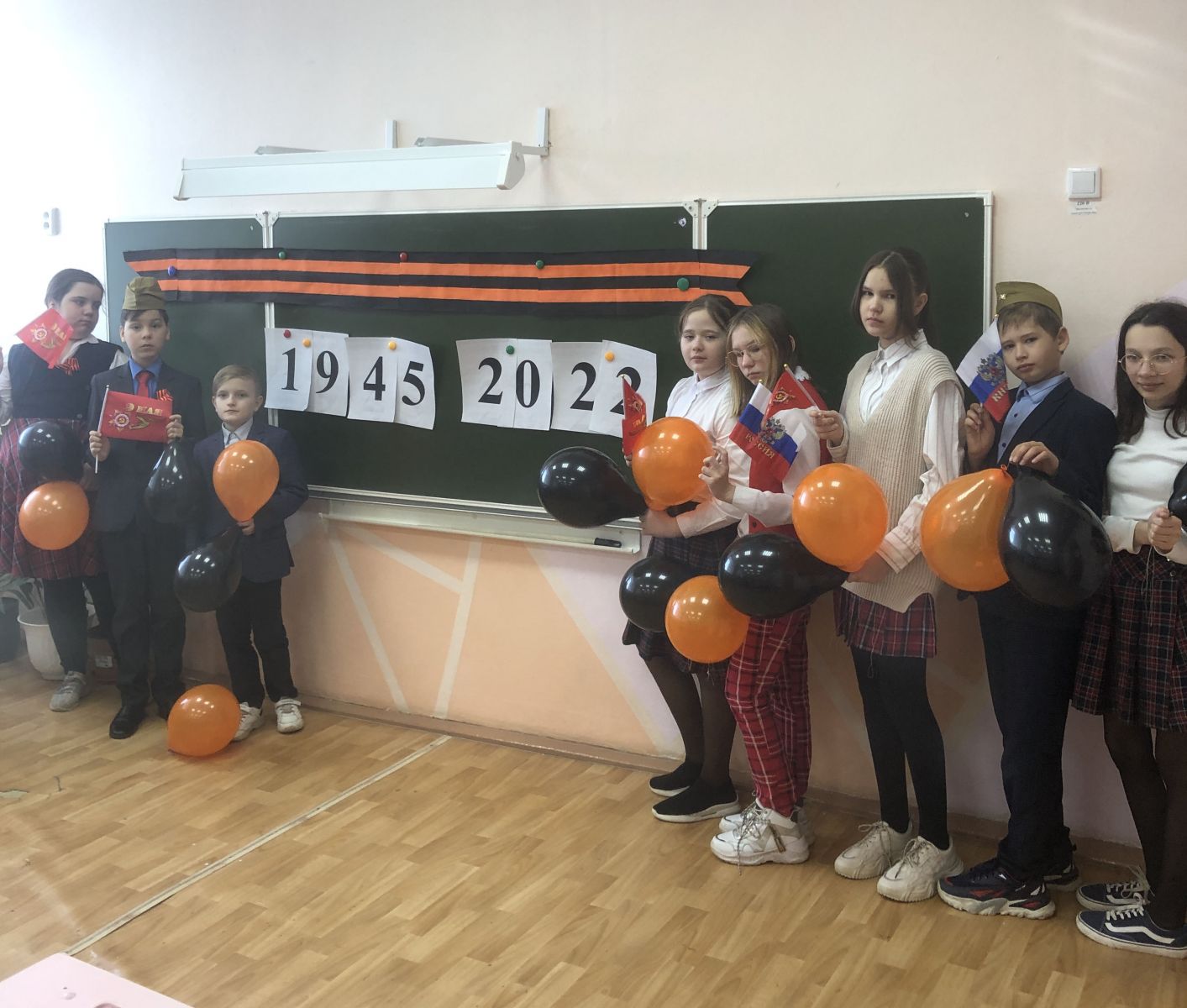 6 мая учащиеся 5 В класса (кл.руководитель Куку Н.А.) в преддверии Дня Победы организовали и провели классный час «Мы помним,мы гордимся,мы благодарны вам,ветераны!»В рамках этого мероприятия ребята рассказывали о своих прадедах и прабабушках, родственниках,на долю которых выпала война 1941-1945 гг. В завершении классного часа ребята нарисовали Георгиевскую ленточку, в создании которой принял участие каждый ученик класса.