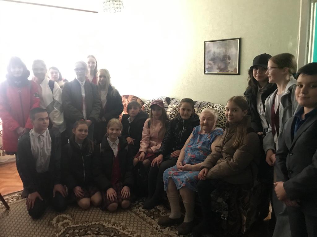 В преддверии празднования 77- летней годовщины Великой Победы учащиеся 6б класса (кл.руководительХисамиева А.М.) посетили труженицу тыла, вдову ветерана, проживающую недалеко от школы. Ребята поблагодарили её за самоотверженный труд, пожелали крепкого здоровья и вручили гостинцы.