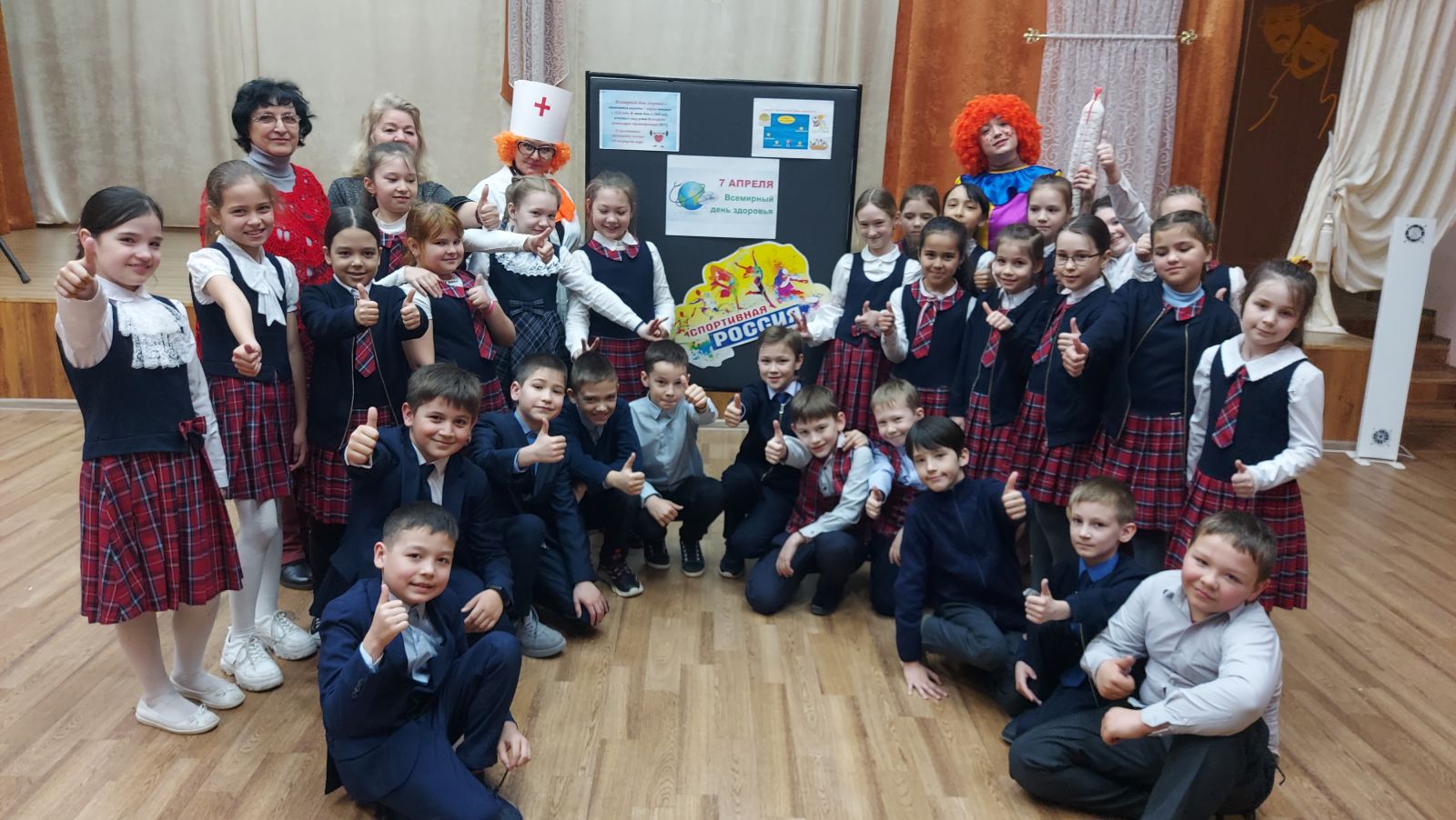Ежегодно 7 апреля отмечается Всемирный день здоровья. Для учащихся начальных классов в лицее был организован флешмоб. Вместе с доктором Неболейкиной и клоунессой Ириской ребята сделали волшебную зарядку и станцевали танец здоровья.