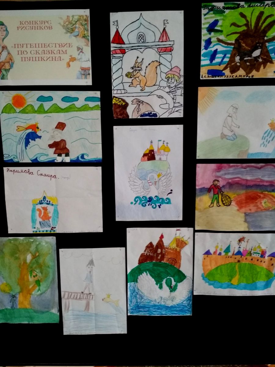 Величайшего русского поэта Пушкина Александра Сергеевича называют основоположником современного русского литературного языка. Творчество поэта сопровождает нас на протяжении всей жизни, ведь с его сказками мы начинаем знакомиться, еще не научившись читать. Ребята в этот день приняли участие в викторине по сказкам А.С.Пушкина, с удовольствием вспоминали свои любимые произведения великого русского поэта. Многие из них настолько яркие и запоминающиеся, что ребятам захотелось проиллюстрировать замечательные строки своими рисунками, и это им удалось.