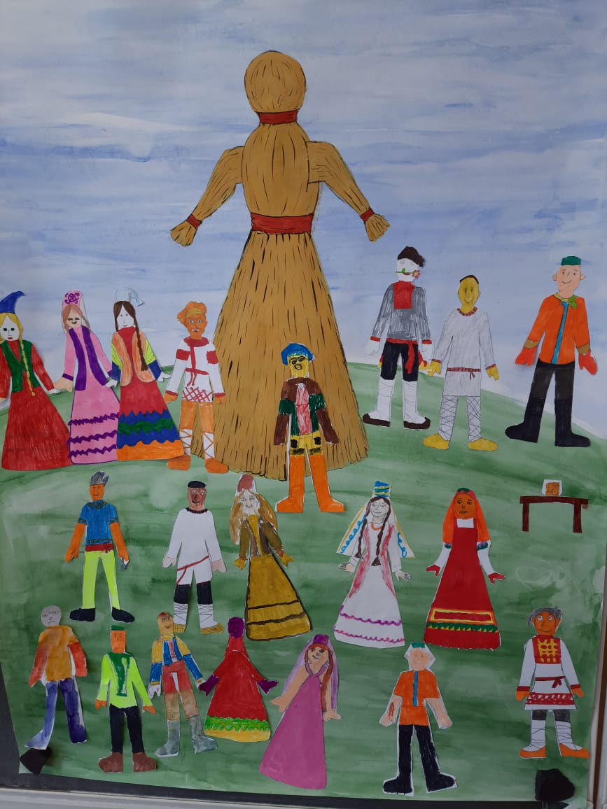 12 марта ученики 3 класса подготовили и защитили проект " Масленица". Для успешной защиты данного проекта ребята изучили народные костюмы различных национальностей, проживающих в республике Татарстан, нашли и примерили женские национальные головные уборы. Ученики изобразили костюмы, которые их предки надевали на праздники.