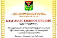 28 декабря во Дворце культуры состоялось праздничное мероприятие, посвященное подведению итогов 2023 года. Коллектив ГАПОУ «Лениногорский политехнический колледж» был отмечен Благодарственным письмом Главы муниципального образования «Лениногорский муниципальный район» за активную гражданскую позицию, воспитание подрастающего поколения, сохранение культуры и традиций города и района. Эта награда в который раз подчеркивает значимую роль коллектива колледжа в воспитании и образовании подрастающего поколения города и района.