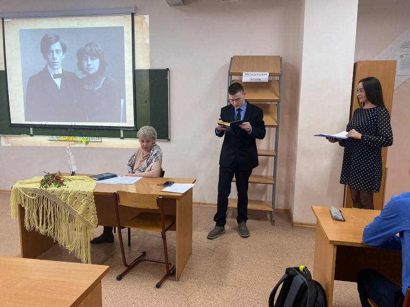 Вместе с сотрудниками ЦБ им.Тукая обучающиеся гр. 1 ТЭ 21 окунулись в мир удивительного поэта, который озаряет своим творчеством нашу жизнь и придает ей смысл… прислушиваясь к стихам – пусть трудным в прочтении и ранящим душу, но зовущим ввысь, к вершинам русской поэзии. «Вся моя жизнь – роман с собственной душой».