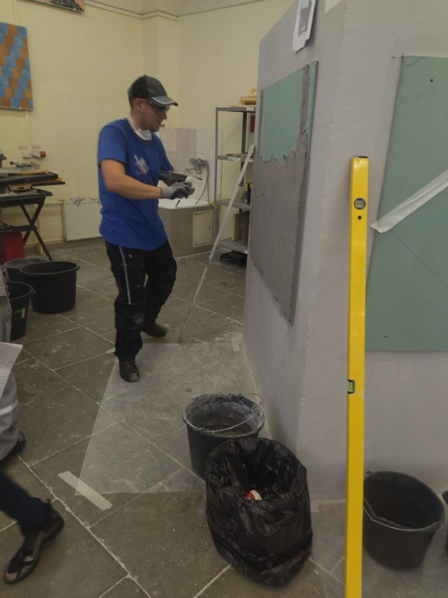 Серебро в компетенции «Сухое строительство и штукатурные работы» категория «Школьник». Участник Габидуллин Мухаммат. Эксперт Тазиева Рамзия Абзятовна.
