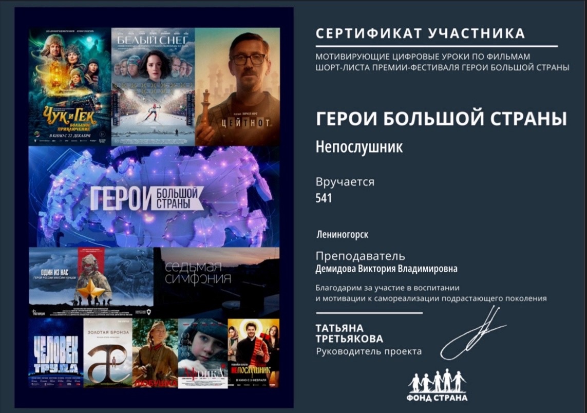 В ЛПК проводятся мотивирующие цифровые уроки на основании фильмов Премии-фестиваля «Герои большой страны»