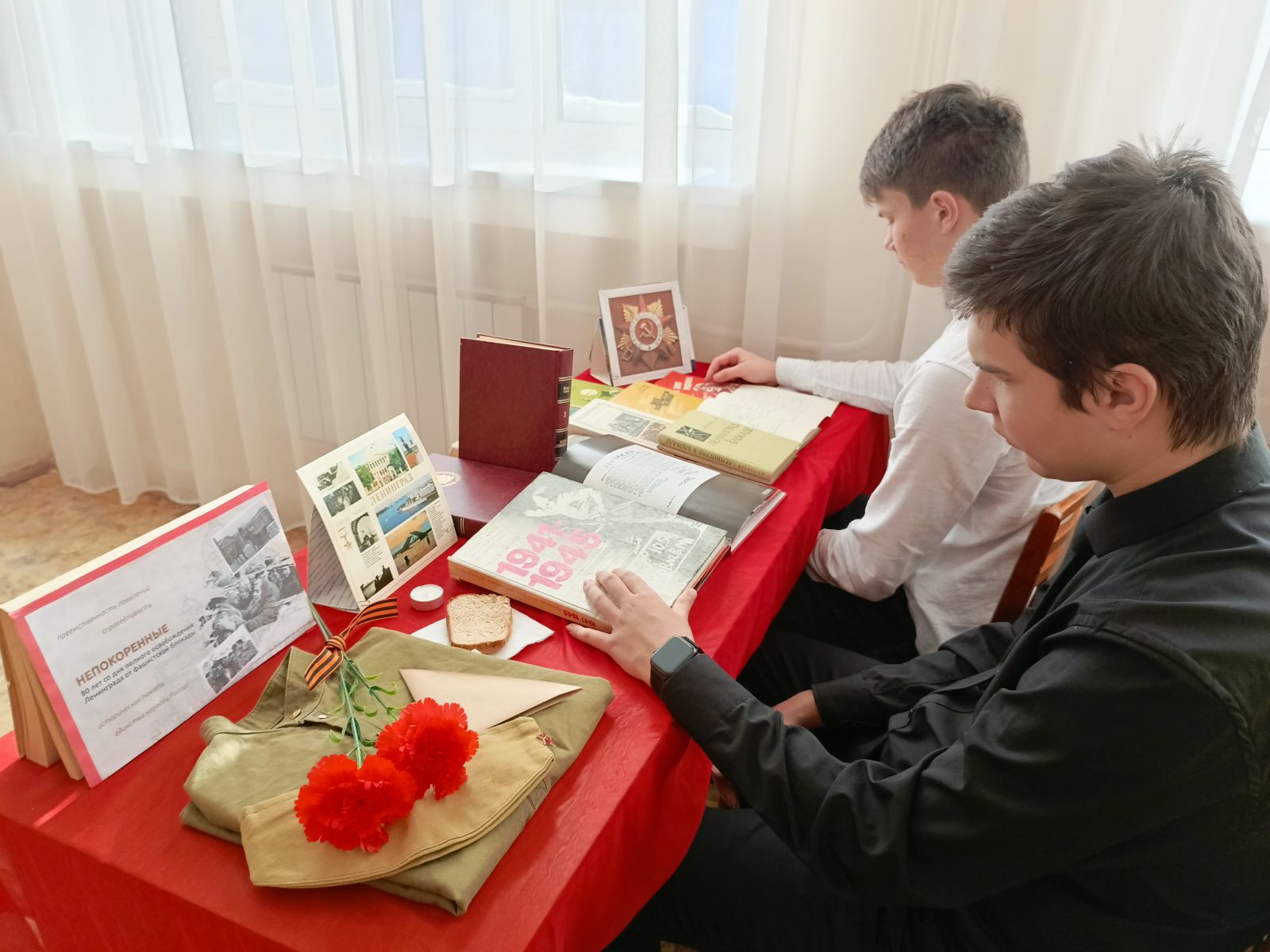 В читальном зале библиотеки оформлена выставка-инсталляция «Непокоренные. 80 лет со дня полного освобождения Ленинграда от немецких захватчиков», на которой представлены художественные произведения и документальные источники из библиотечного фонда.