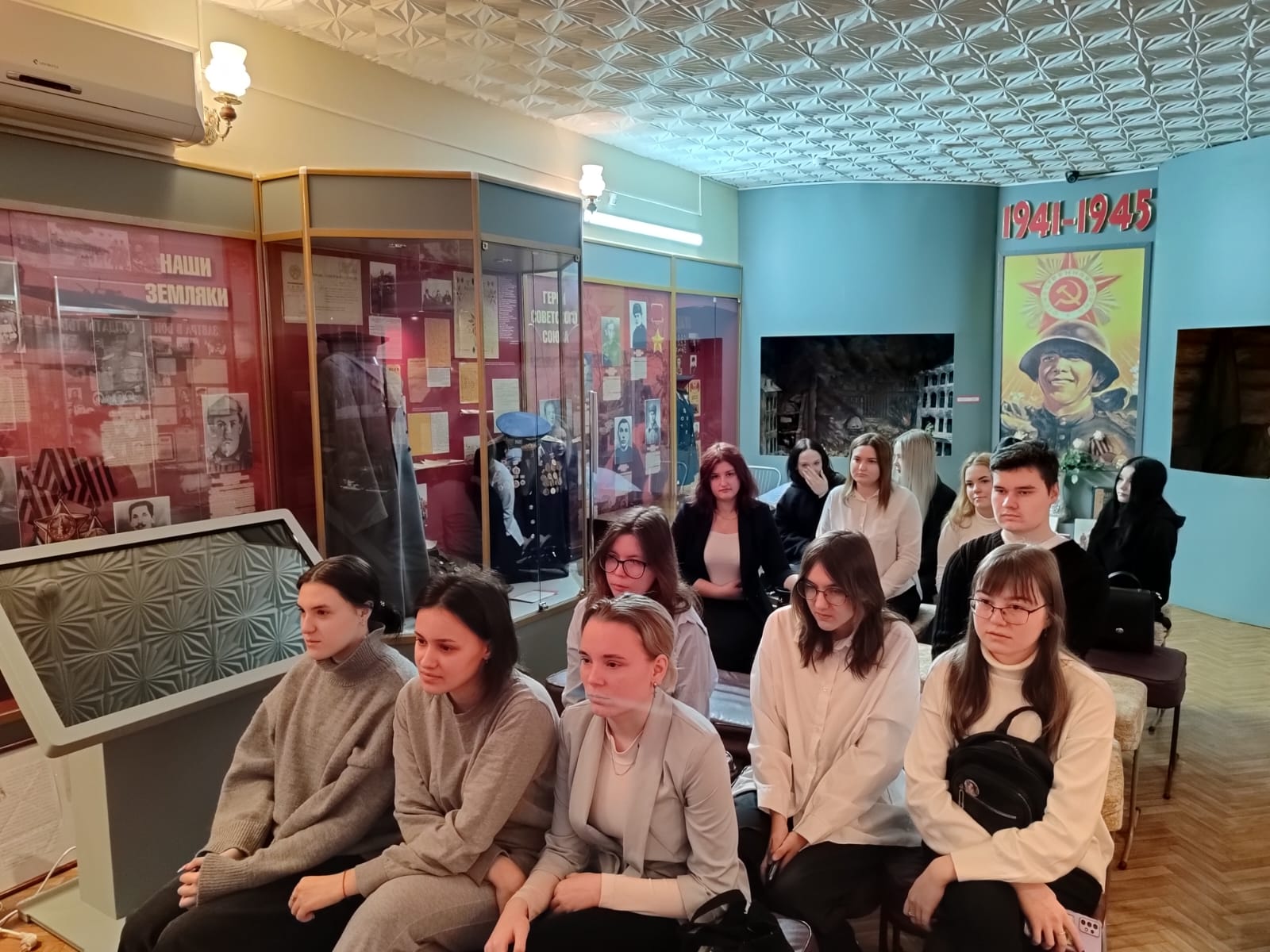 Сегодня студенты группы ЭМ 22 посетили краеведческий музей. Сотрудники музея рассказали о российских воинах- интернационалистах. Были показаны фото и видеоматериалы об участии наших солдат в Афганистане, в 1 и 2 Чеченских войнах.