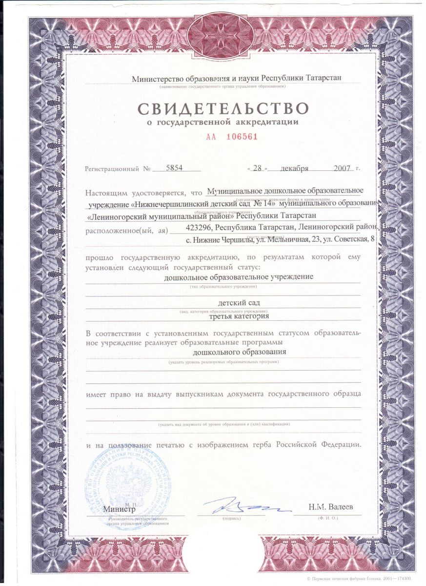 Муниципальное бюджетное дошкольное образовательное учреждение «Нижнечершилинский детский сад" муниципального образования "Лениногорский муниципальный район" Республики Татарстан