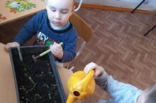 Мною было предложено заняться таким интересным делом как посев семян. В первую очередь мы подготовили землю в лотке. Затем мы рассмотрели смена, которые собрались сеять. При этом мы побеседовали о том, на что похожи данные семена, какого они цвета. Следующим этапом был уже непосредственно посев. Дети с огромным интересом и аккуратностью рассеивали семена по лотку. По окончании работы ребята высказались, как им было интересно рассматривать и сеять семена. Благодаря таким занятиям у детей развивается интерес к выращиванию растений. Теперь мы будем наблюдать за ростом наших цветов и ухаживать за ними.