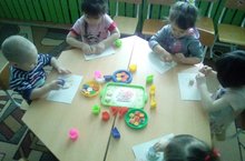 В уголке ИЗО и творчества детям было предложено новый материал для лепки –соленое тесто. Это – чудесный материал для работы, пластичный, мягкий, интересный. И оно очень хорошо подходит для занятий с малышами, так как к рукам тесто не липнет, не пачкает и легко отмывается. Ребята сначала с большим интересом изучили солёное тесто, а затем взялись за работу. Кто-то лепил печеньки, пряники, кто-то бублики, ведь предстояло приготовить много угощений к чаю для куклы Кати. В процессе лепки дети получили большое удовольствие.