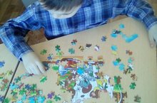 Игра в пазлы влияет на развитие малыша:развивает мелкую моторику рук и координацию движений, тренирует способность видеть задание многогранно,развивает логику, развивает воображение, фантазию,память,внимание. Все ребята любят собирать сюжеты из популярных детских сказок и мультфильмов.Сегодня собирали сюжет из мультфильма "Трое из простоквашино".Пазлы в детском саду постоянно детям доступны. При желании они в любое время могут её собирать.