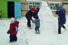В преддверии Нового года по муниципальному району был объявлен конкурс на лучшее новогоднее оформление. Для участия в данном конкурсе сотрудники детского сада, а также воспитанники начали строить фигурки из снега.